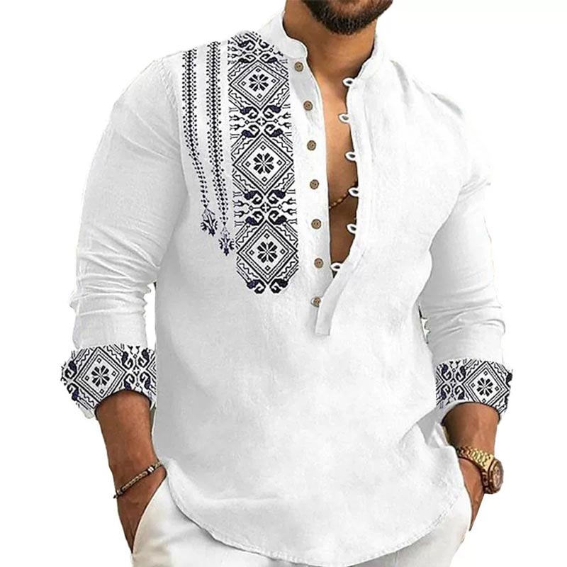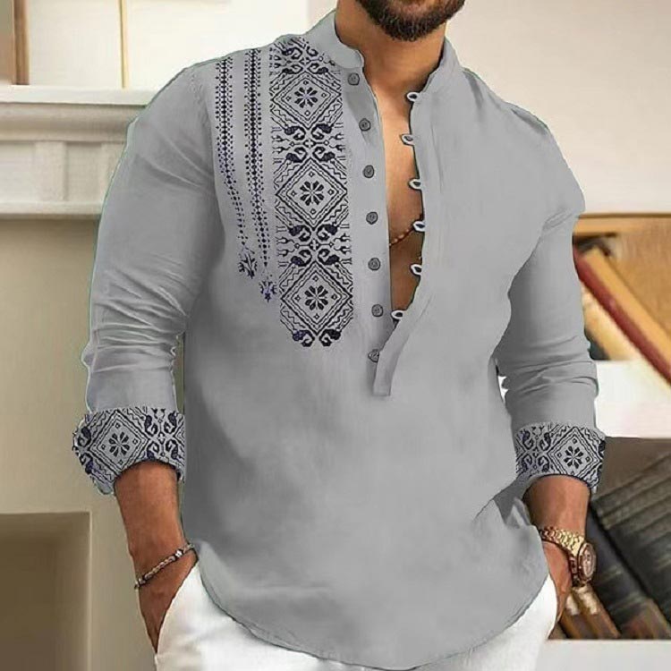 Whether you're heading to a weekend brunch or a night out with friends, this Long-sleeved Stand Collar Casual Shirt will have you looking effortlessly stylish. Its casual elegance will make you stand out in any crowd.