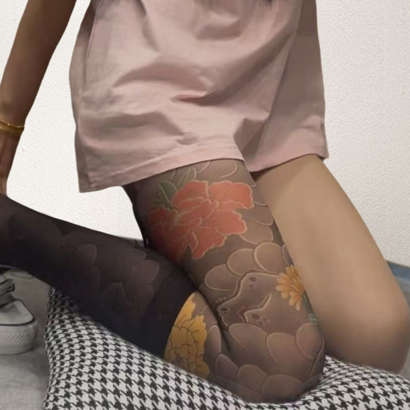 🔥2025 Hot Sale🔥Unisex High Waist Flower Tattoo Stockings