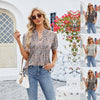 🔥HOT SALE 50% OFF🔥 V-Neck Floral Print Ruffled Short Sleeve T-Shirt