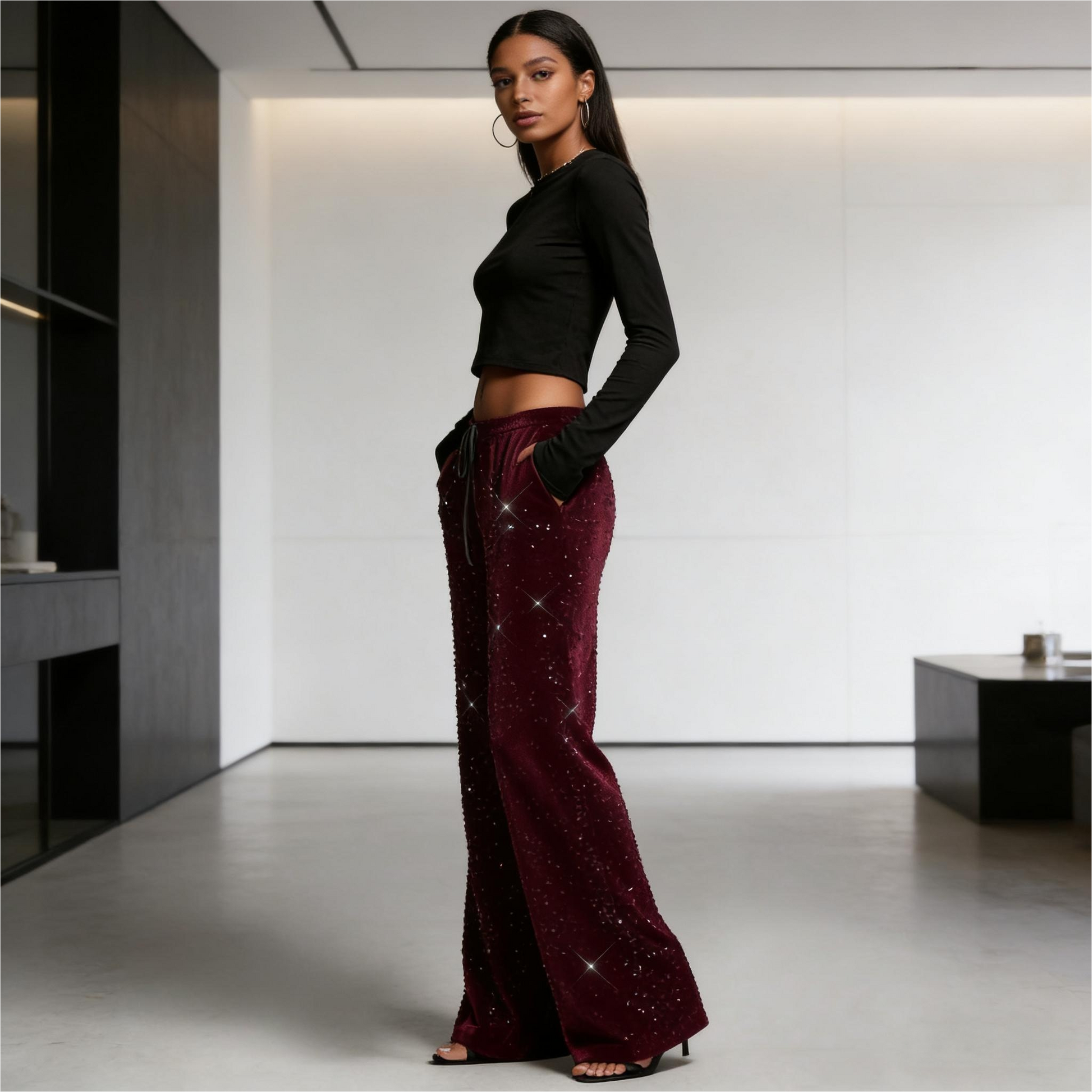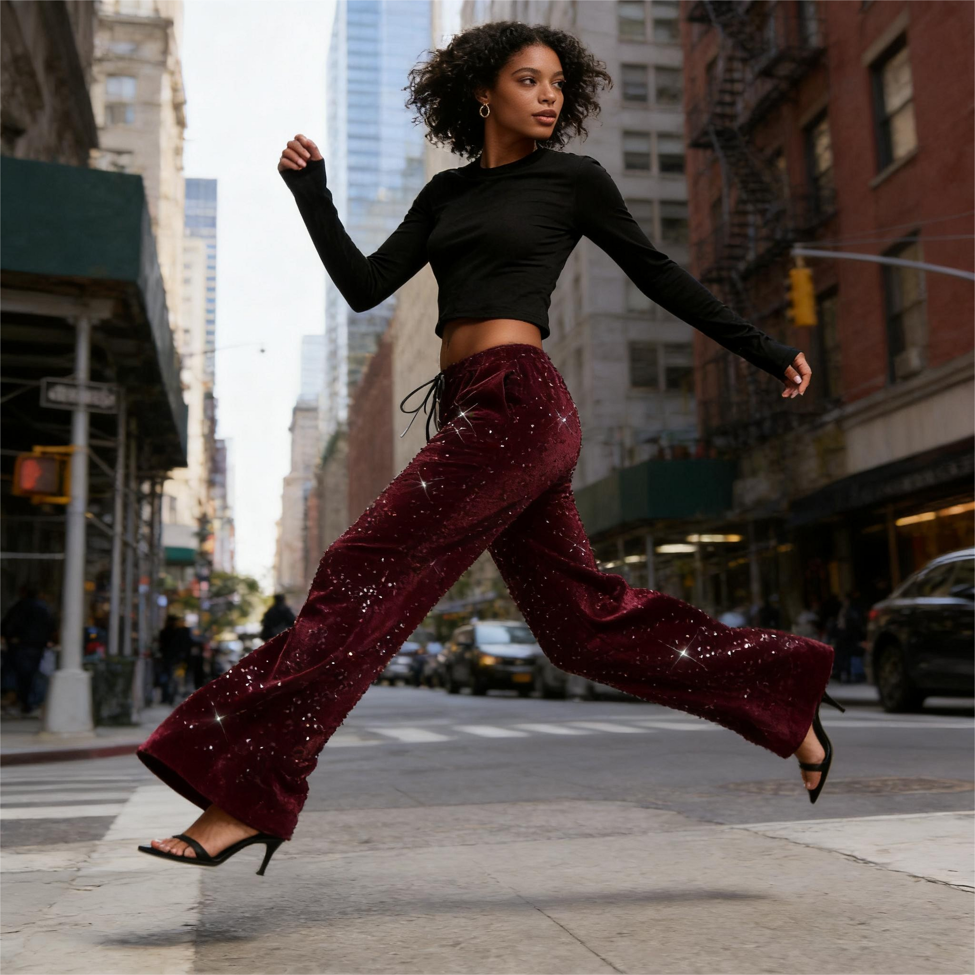 💃💃Crafted with eye-catching sequin detailing that catches every light, these pants deliver showstopping sparkle for nights when you refuse to blend in.